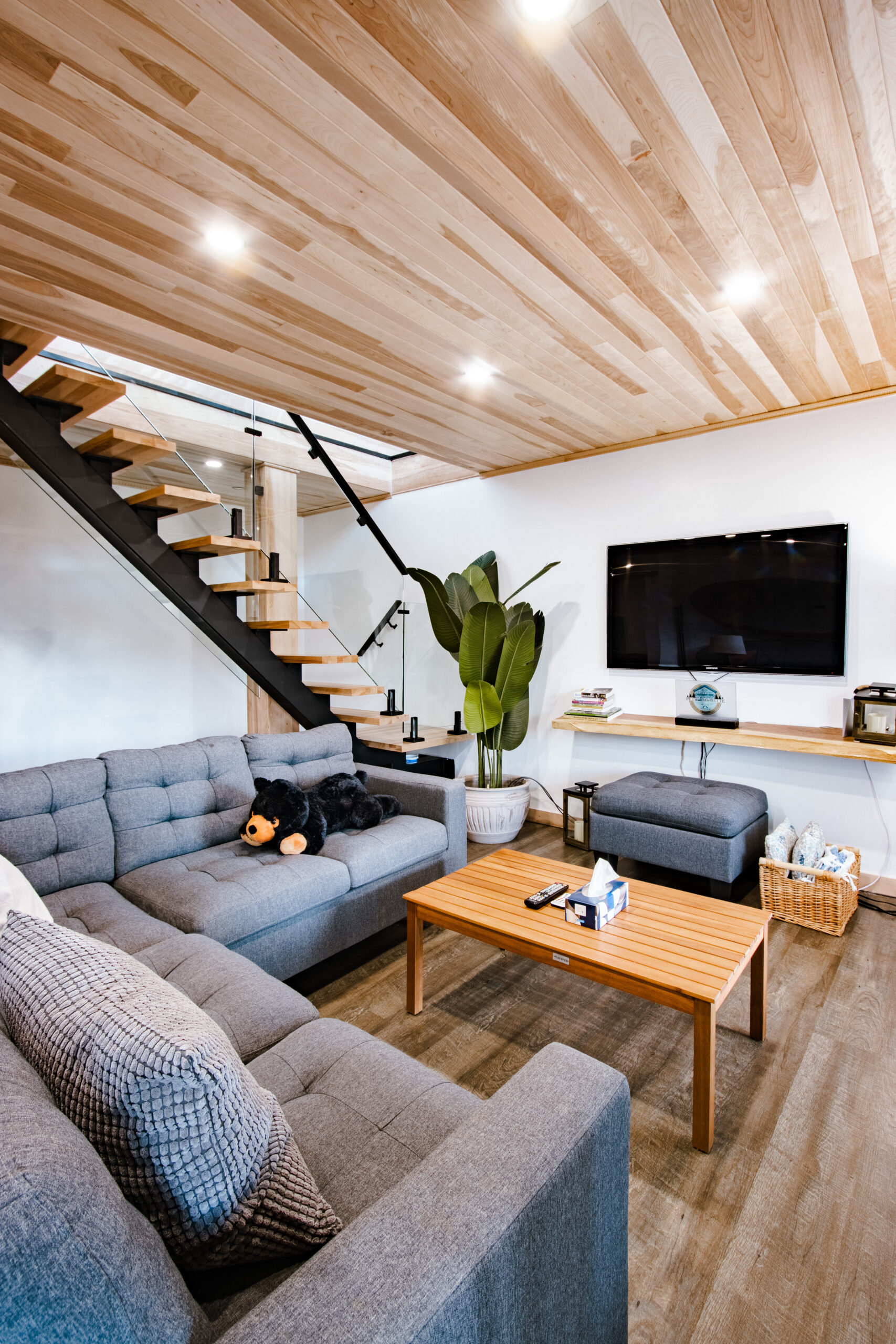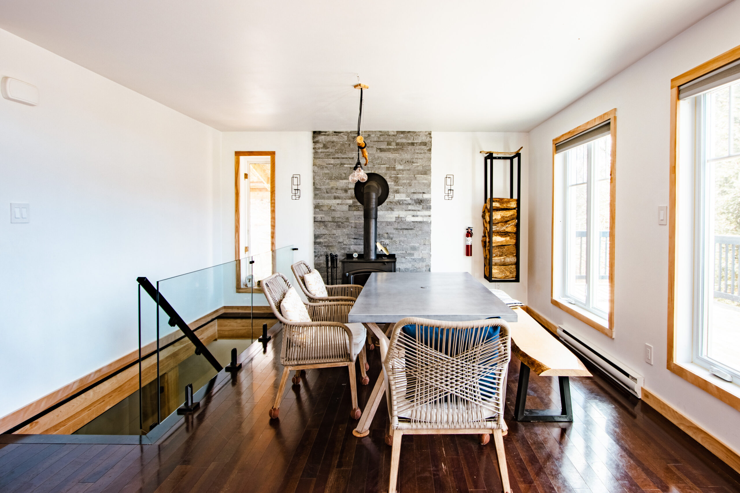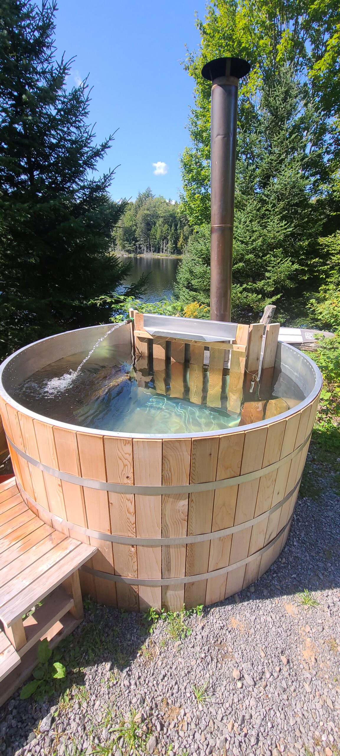 This private waterfront chalet is fully equipped with an off-the-grid round cedar spa (May – Sept), 2 rigid fiberglass paddleboards, BBQ, outdoor dining area with a firepit, a small hill for tobogganing (during winter) and more.