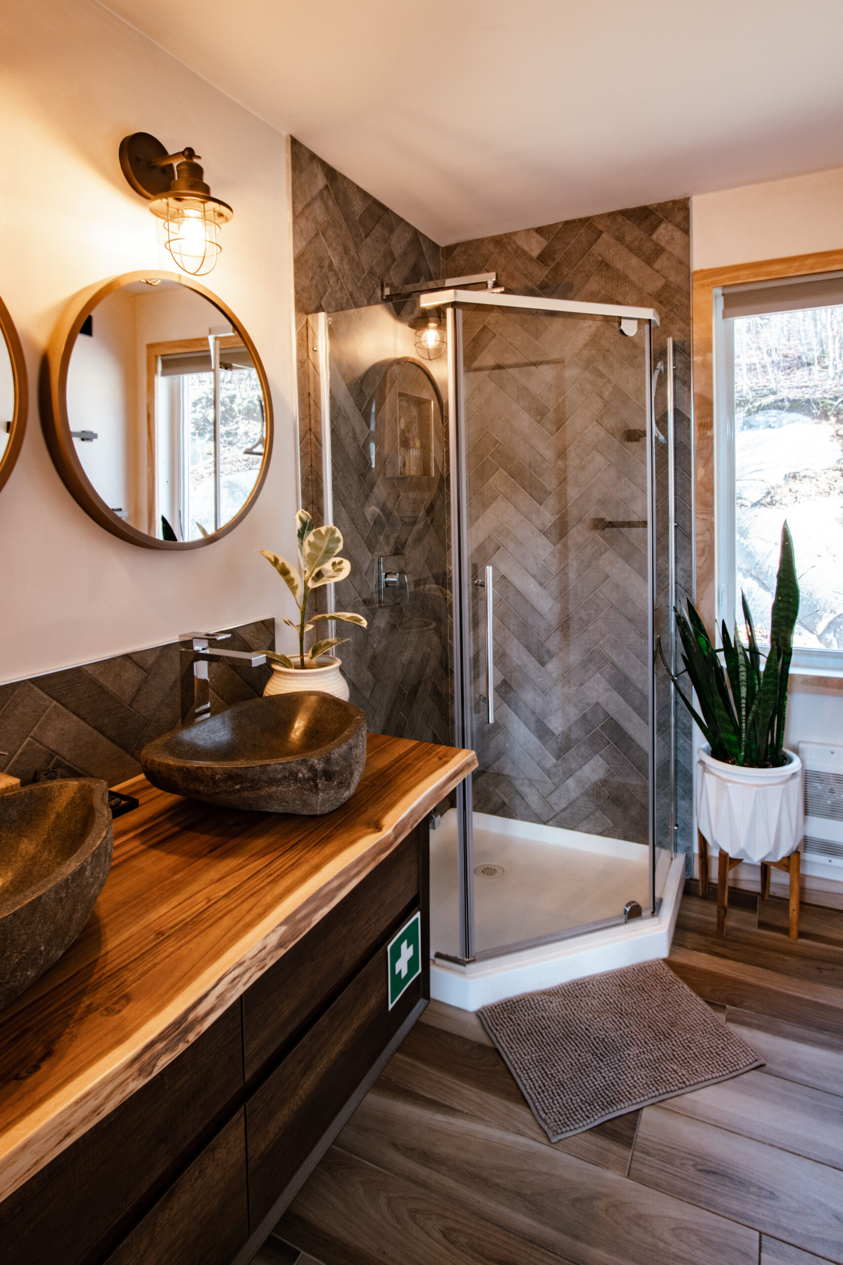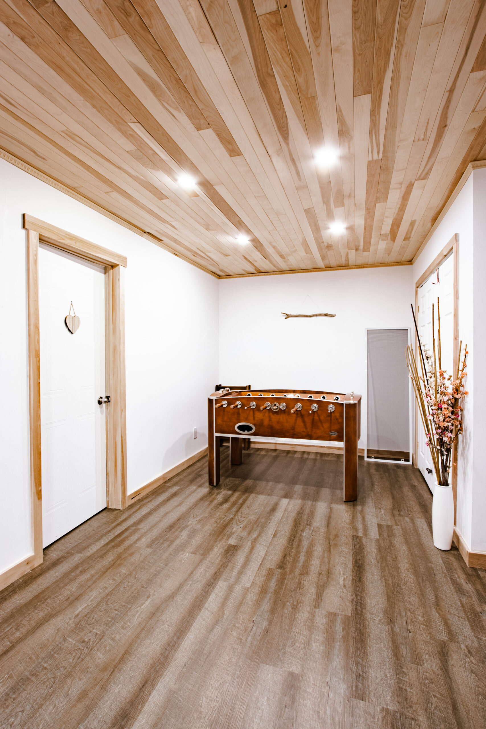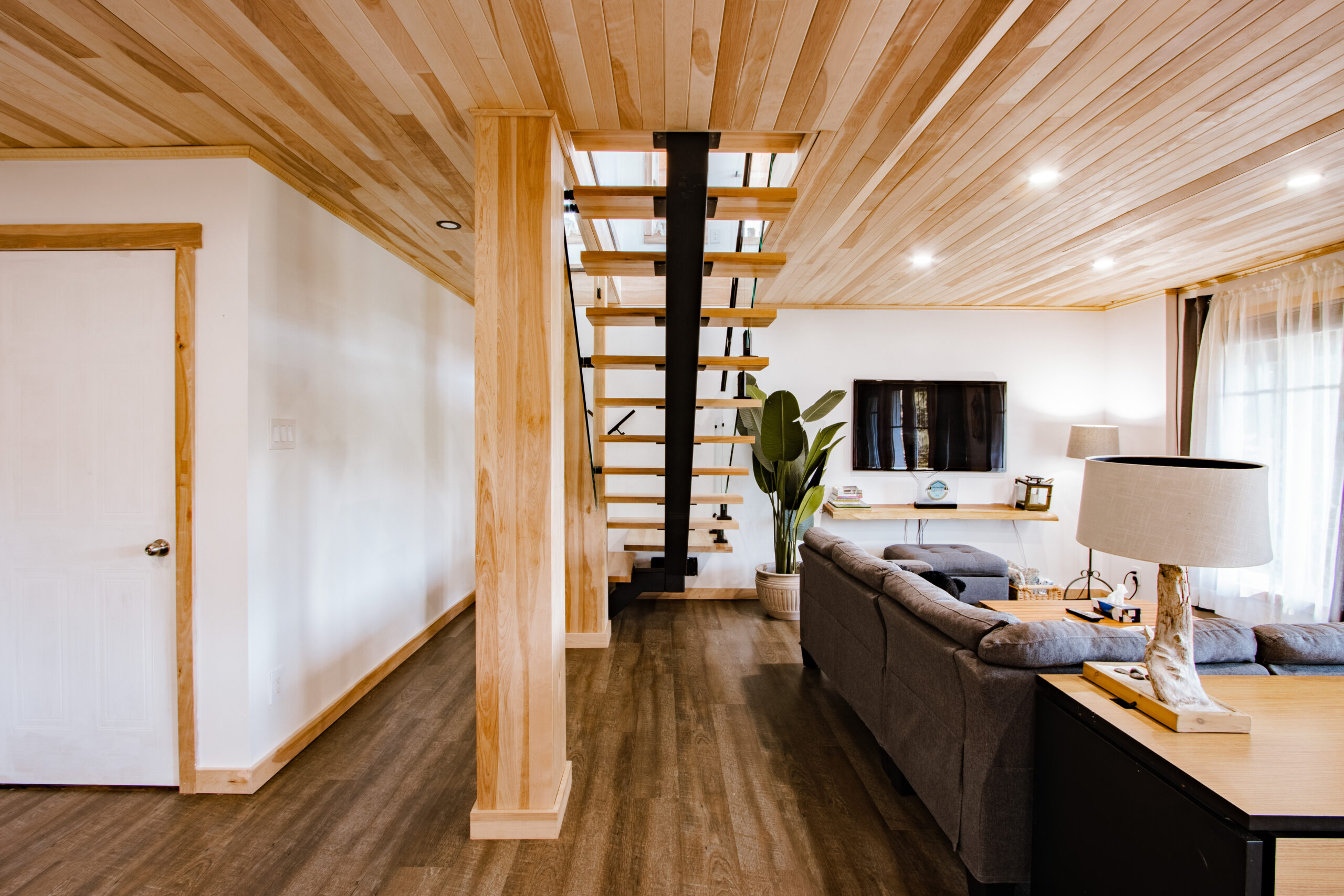 This private waterfront chalet is fully equipped with an off-the-grid round cedar spa (May – Sept), 2 rigid fiberglass paddleboards, BBQ, outdoor dining area with a firepit, a small hill for tobogganing (during winter) and more.