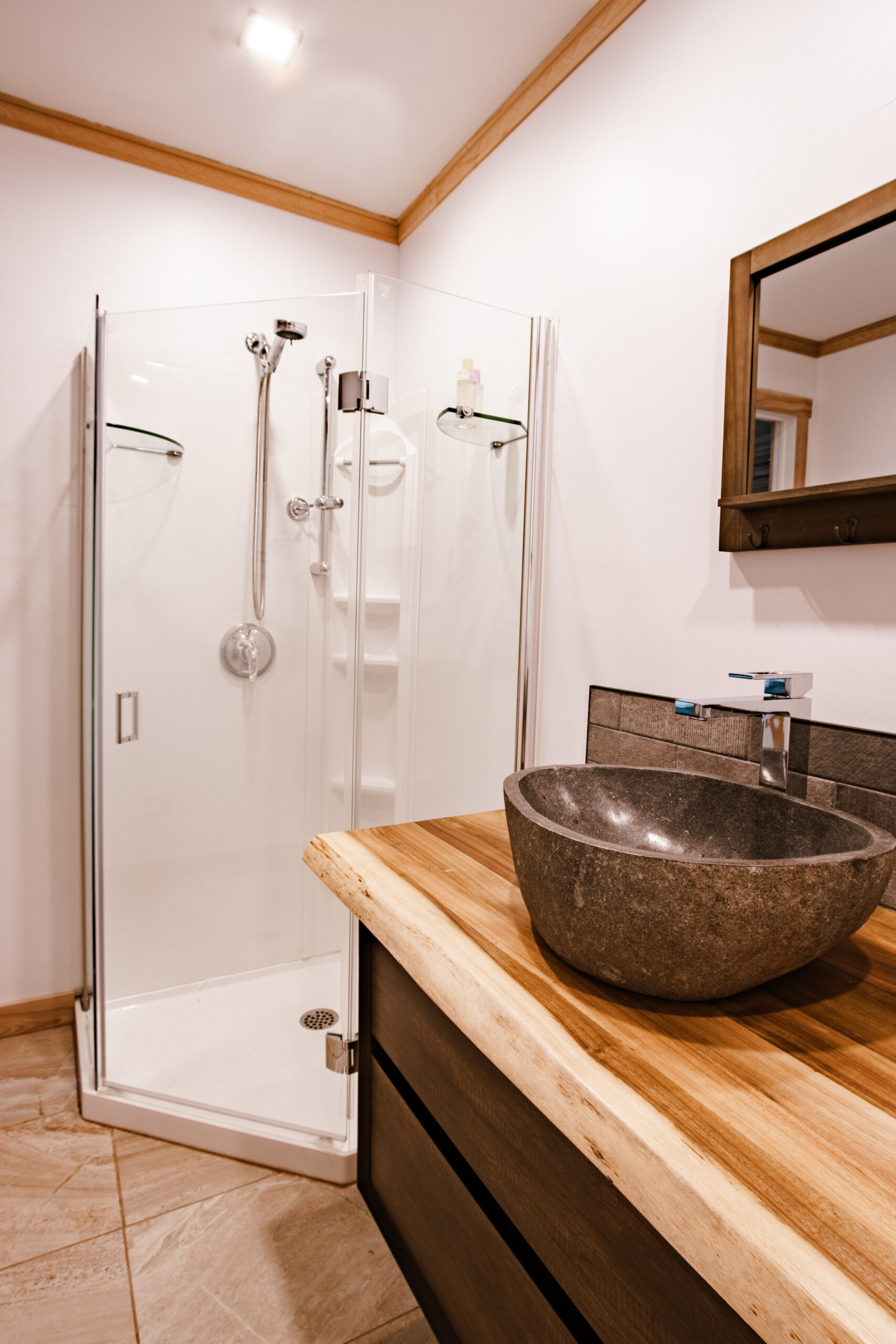 With keyless guest access on 2 doors, no need to carry a key around, have peace of mind while going on excursions on the lake to the Grand Lac Jetté (an even bigger lake connected to our lake with just as much intimacy).